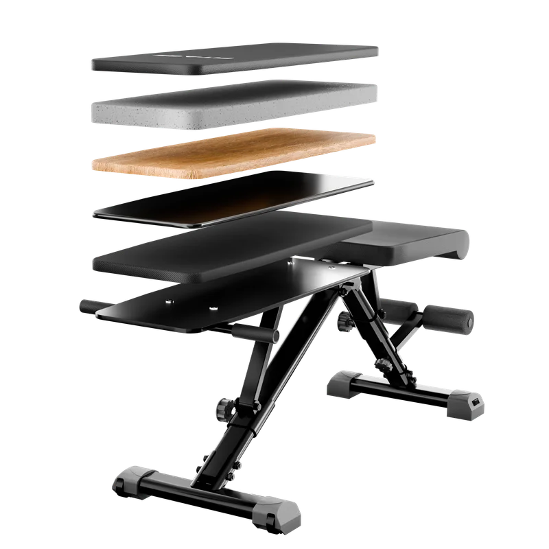 Na je training klap je de bank eenvoudig in tot een compact formaat. Perfect voor kleine woonruimtes — schuif hem onder het bed of zet hem rechtop tegen de muur zonder dat hij in de weg staat.